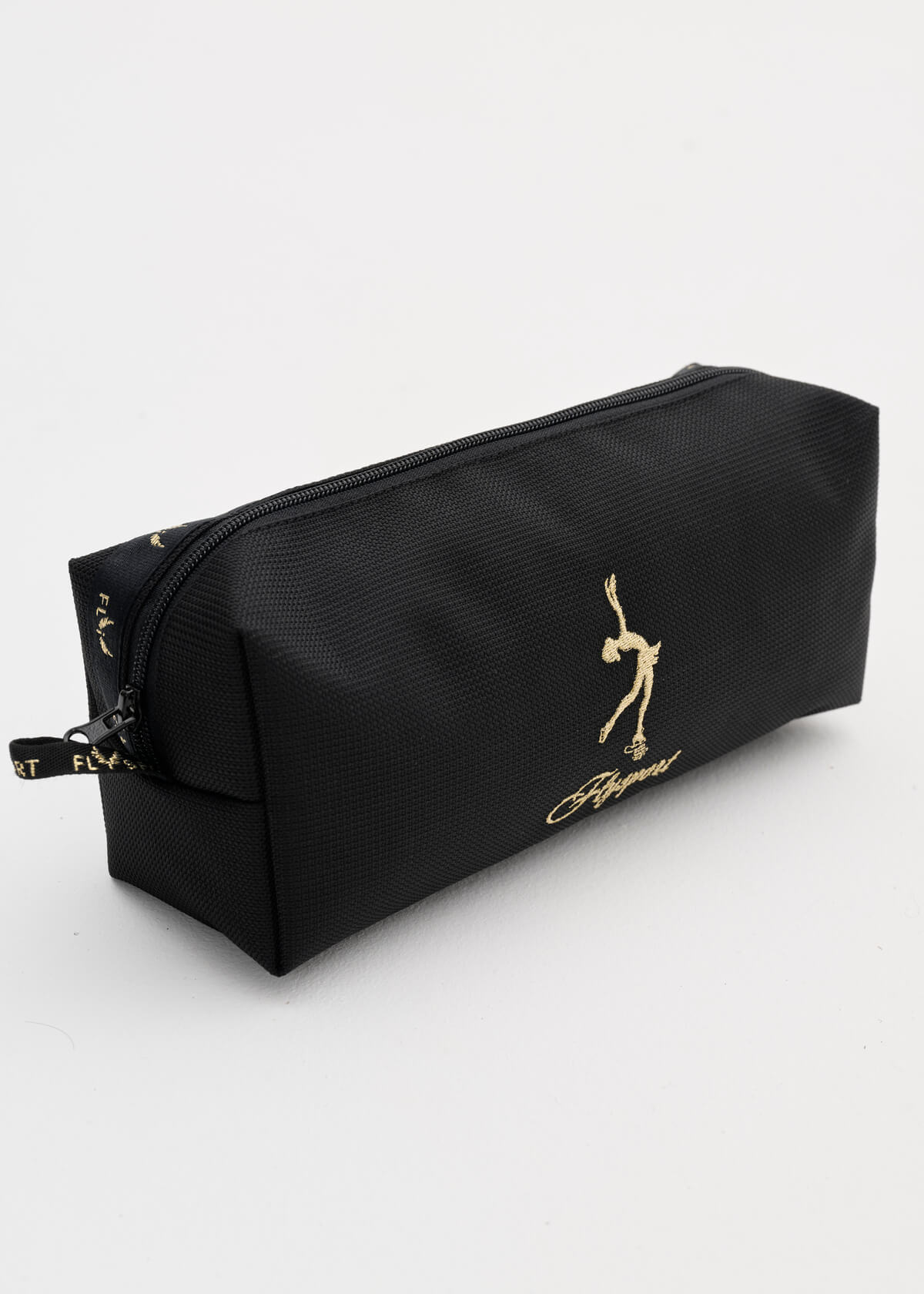 Black, with signature braid and figure skater embroidery. Convenient to take to competitions with a comb, hairspray, etc. Personalization is technically impossible.