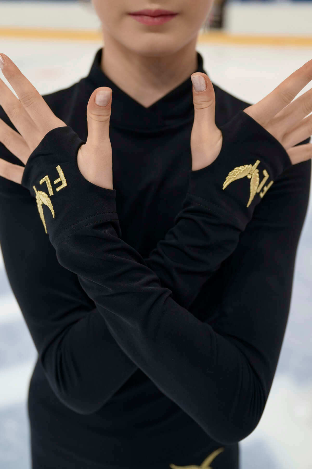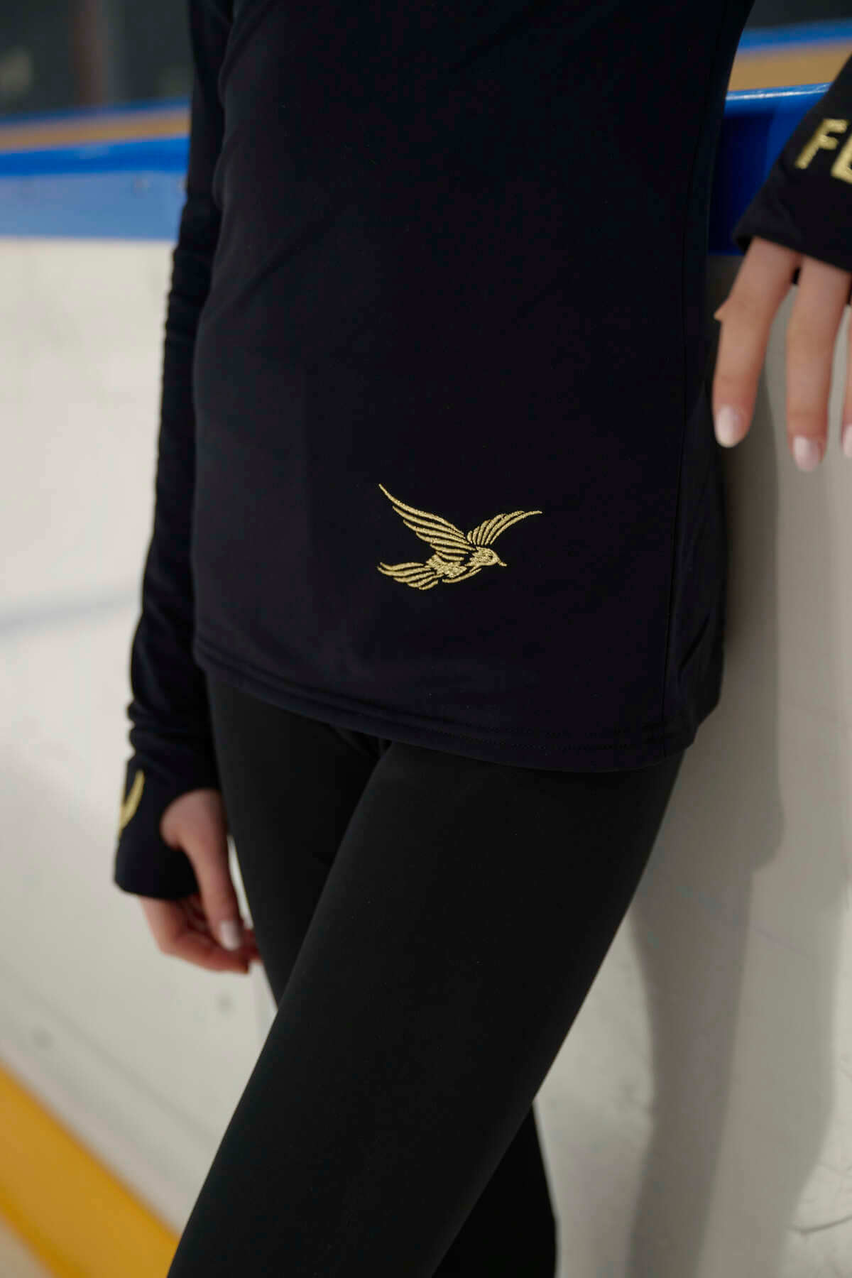 Thumb hole long sleeve top in black with bird embroidery at the side and FLY wings embroidered sleeves. Embroidery of initials is possible by prior agreement.