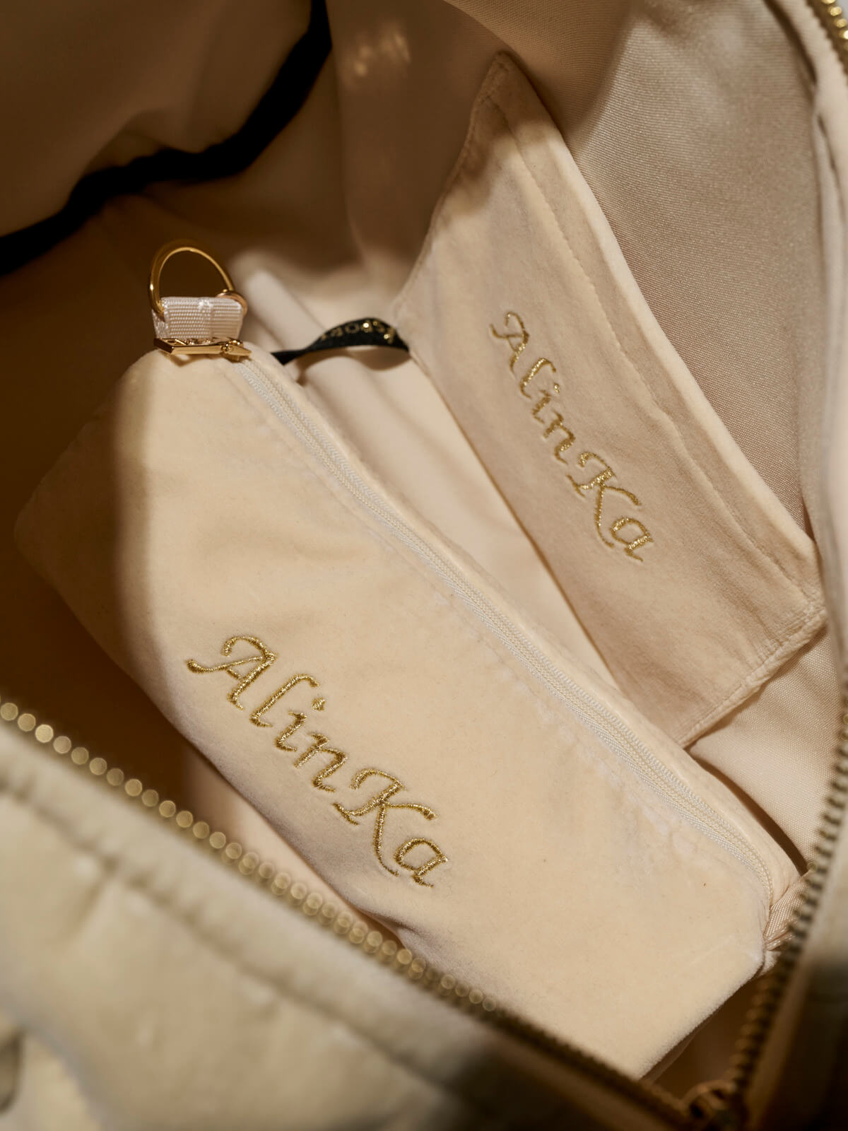 A cosmetic bag (22 x 8 cm) can be custom-made, also embroidered with finial
