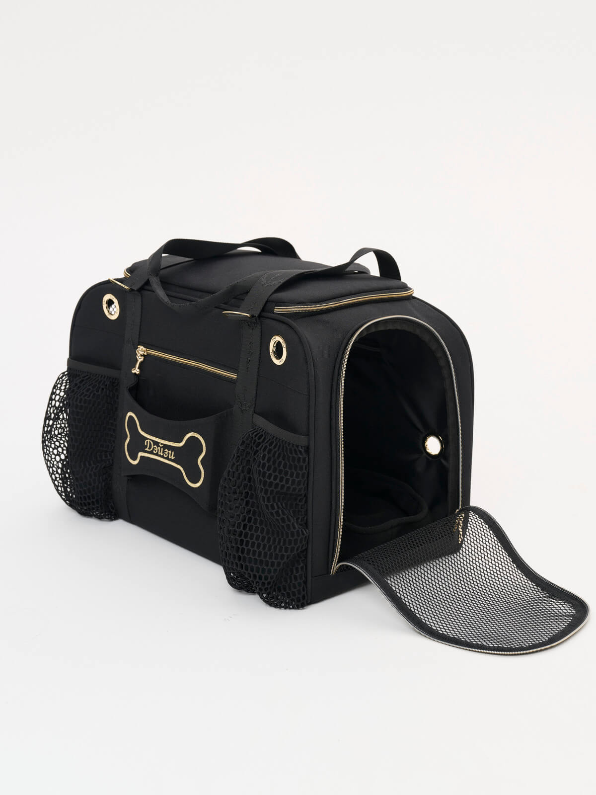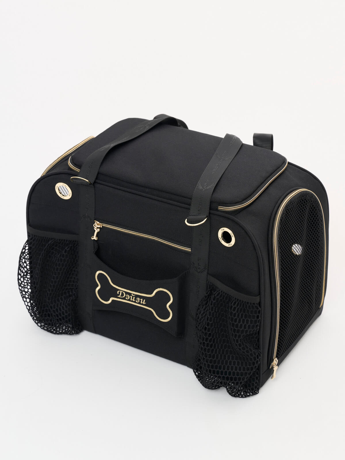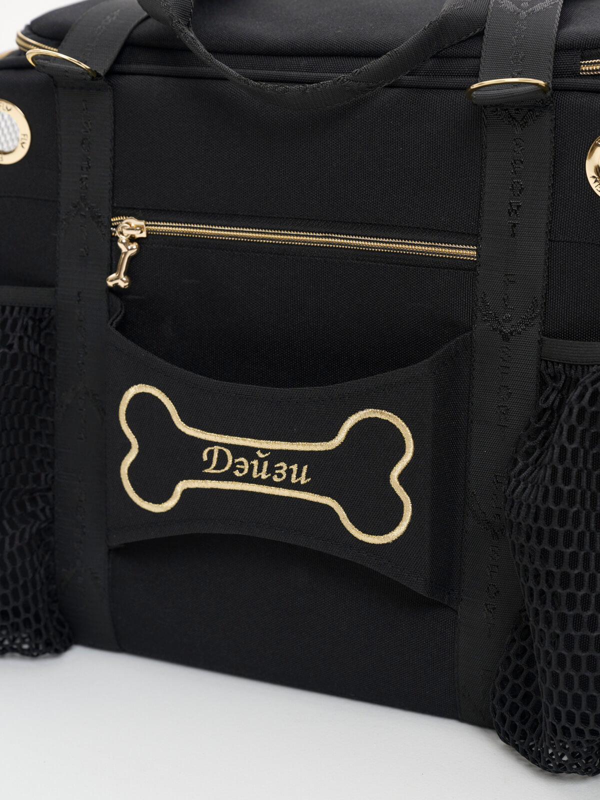 This accessory is not only comfortable but also fashionable – your pet will definitely not go unnoticed during walks and trips. The fittings are crafted in the shape of gold bones. You can also embroider your pet's name (the hoop size is limited to six letters!). Inside, there are convenient pockets for diapers, water bottles, and bowls. Quick access is available for petting and soothing your beloved pet.