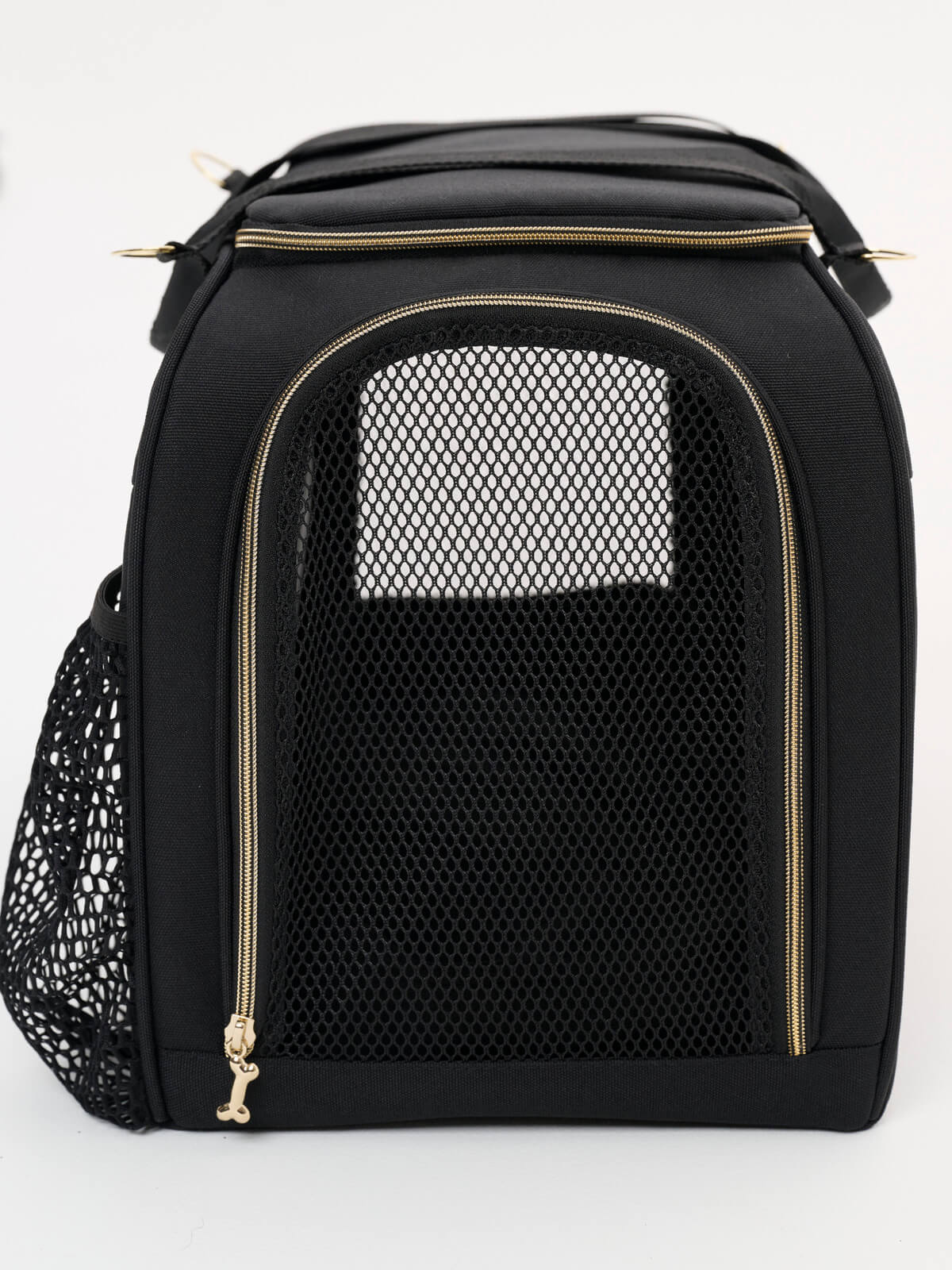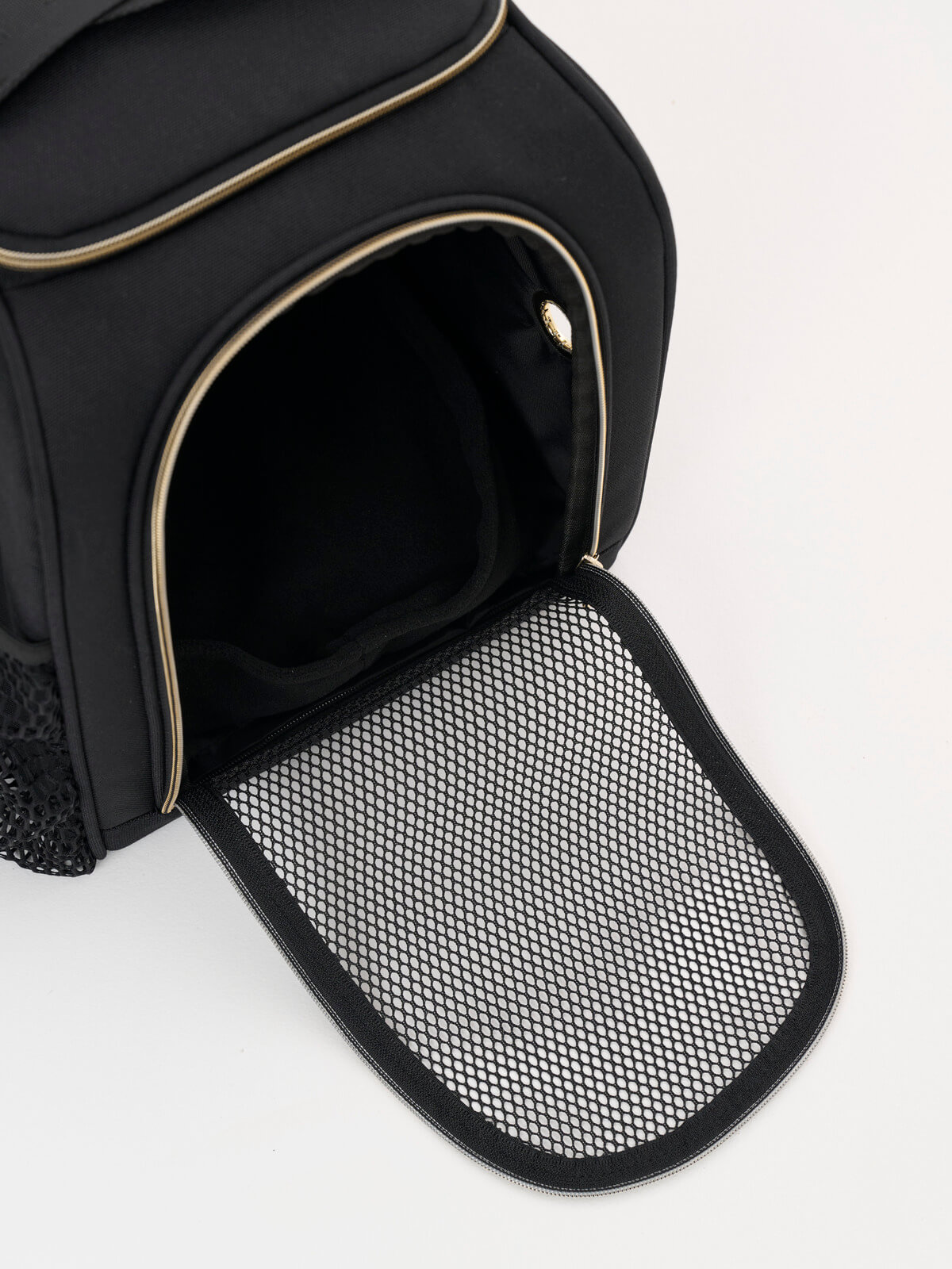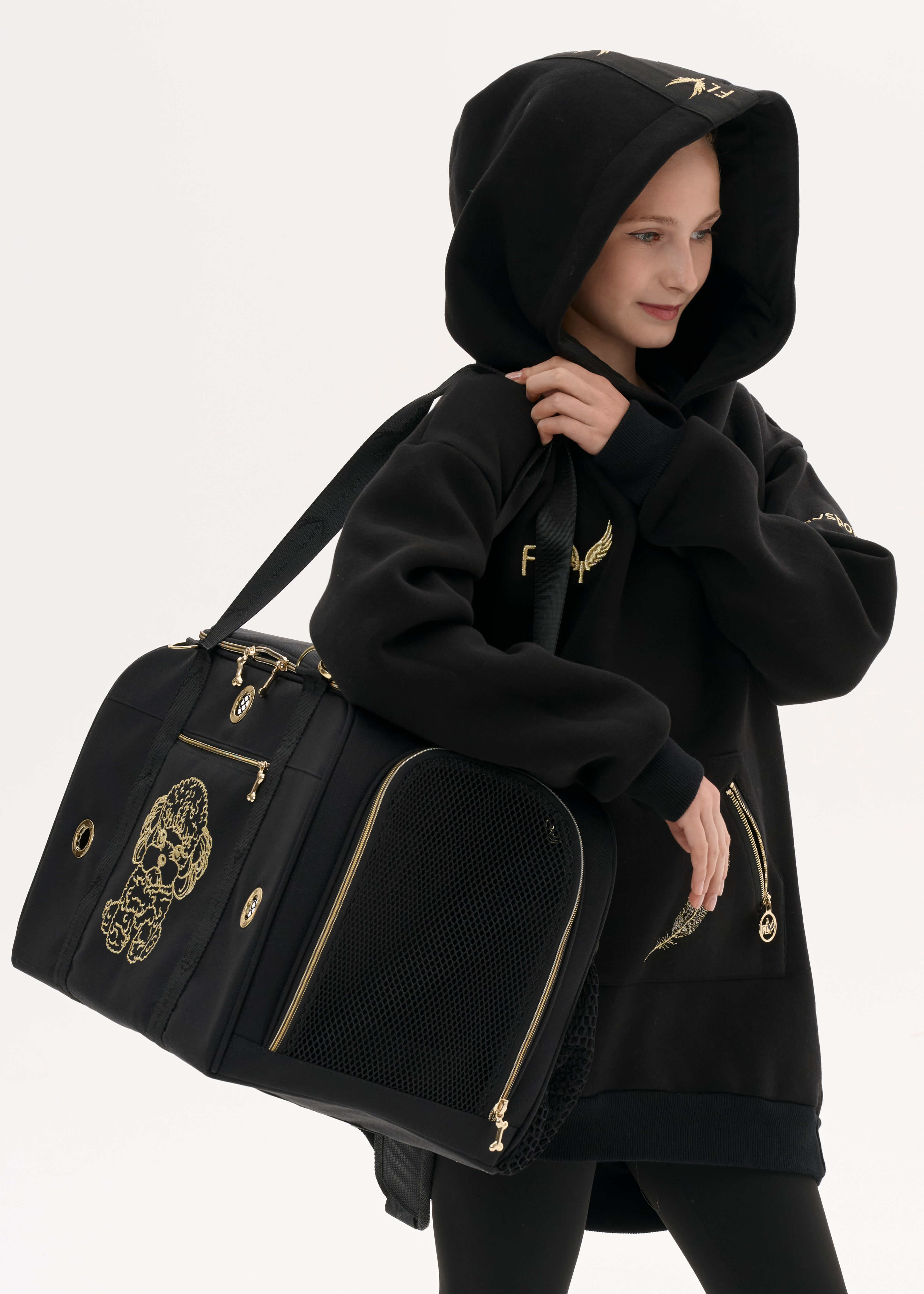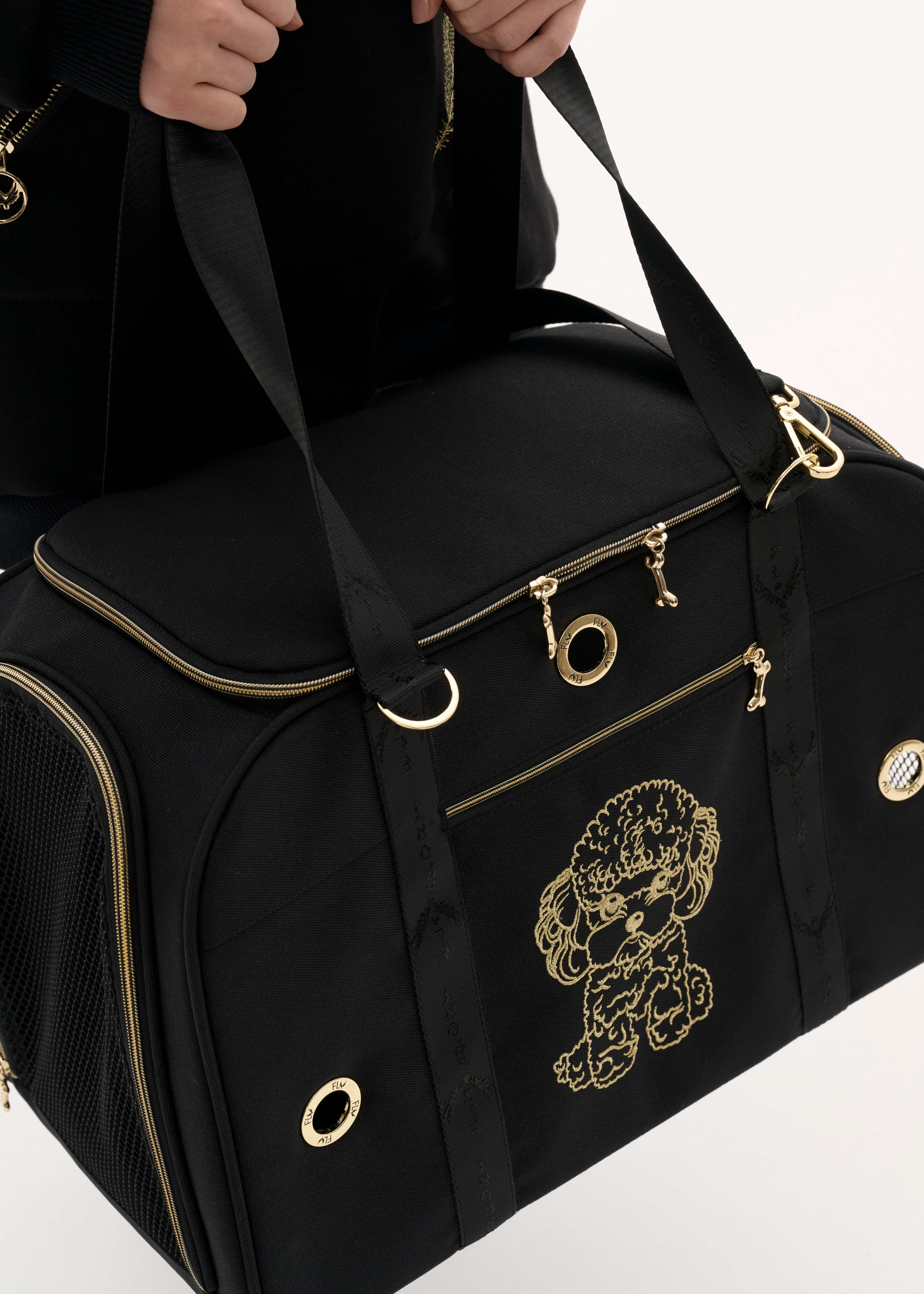 This accessory is not only comfortable but also fashionable – your pet will definitely not go unnoticed during walks and trips. The fittings are crafted in the shape of gold bones. You can also embroider your pet's name (the hoop size is limited to six letters!). Inside, there are convenient pockets for diapers, water bottles, and bowls. Quick access is available for petting and soothing your beloved pet.