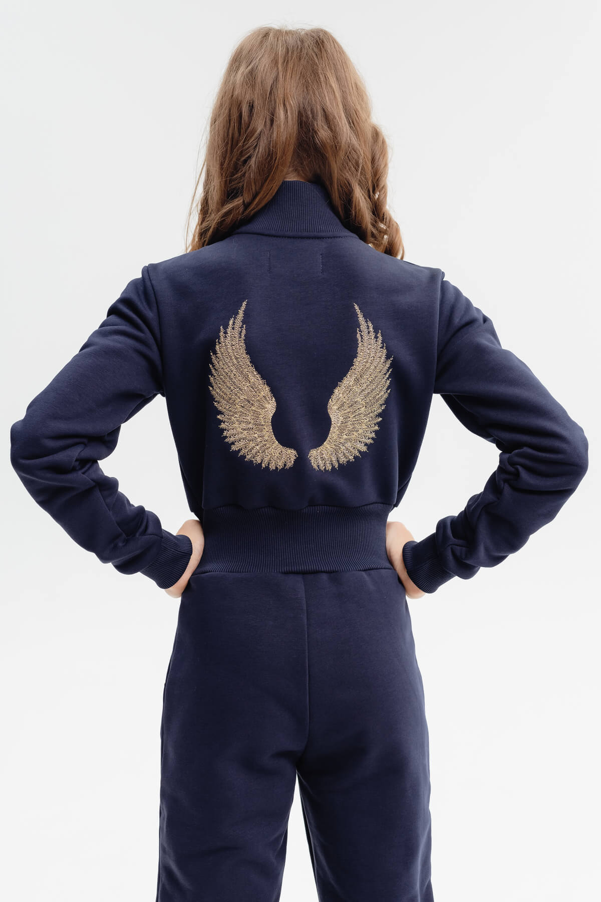 Color black and blue. Gold embroidered wings on the back. Only up to a height of 150 cm! Embroidered last name and first name on the chest.